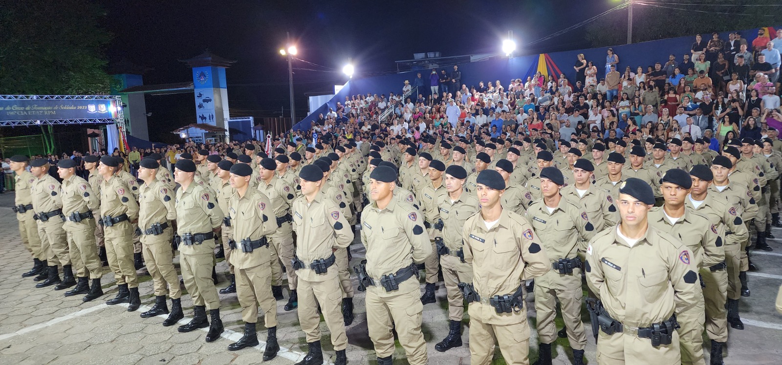 Na noite de ontem, 26, ocorreu a formatura do Curso de Formação de Soldados da Polícia Militar de Minas Gerais (PMMG) de 2023. O evento foi realizado no pátio do 14º Batalhão de Polícia Militar (BPM) pelo comando da 12ª Região de Polícia Militar, com a participação de 121 formandos.