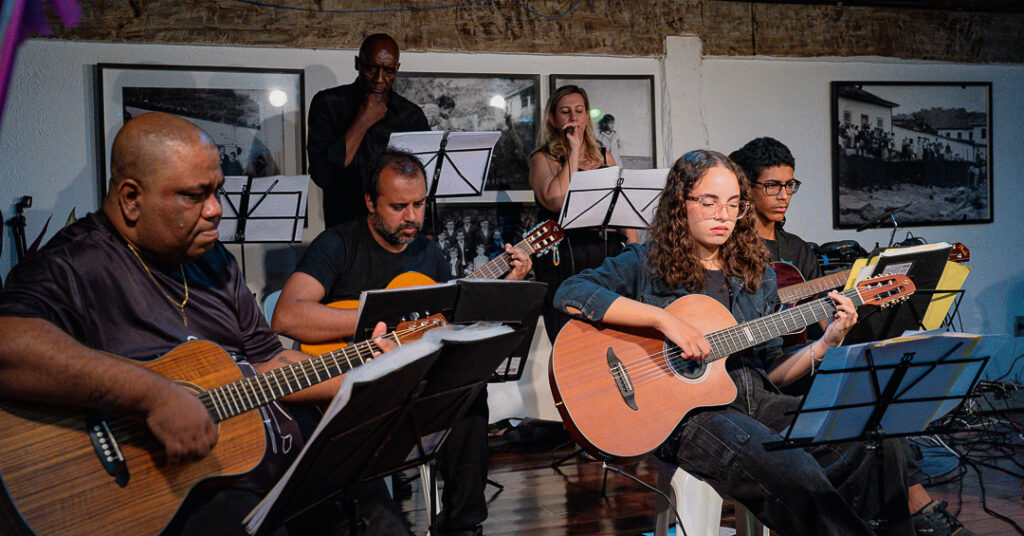 Davi Andrade, professor de Violão, e alunos da ELMI - Foto Aguinaldo Ferry