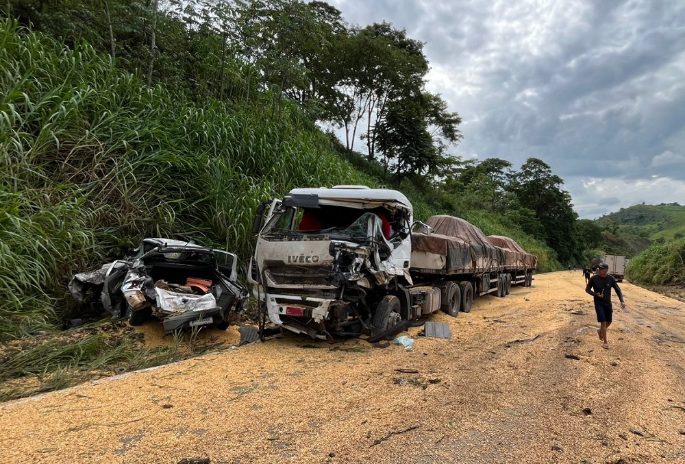 De acordo com a Polícia Rodoviária Federal (PRF), o veículo, que transportava milho, seguia no sentido Espírito Santo quando ocorreu o acidente, provocando a interdição total da rodovia federal.