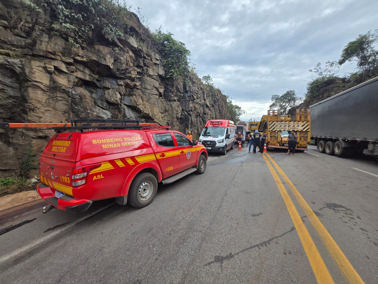 A Polícia Rodoviária Federal (PRF), esteve no local coordenando o tráfego no trecho em sistema pare e siga, com alternância de cerca de cinco minutos entre os sentidos. A Concessionária Nova 381 atua no monitoramento do trânsito e na retirada dos veículos para a desobstrução total da via.