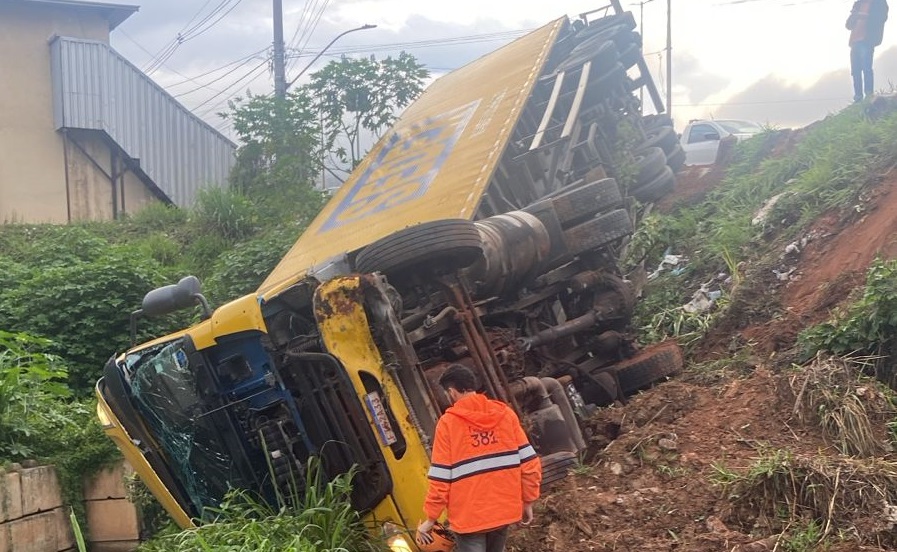 Uma carreta dos Correios tombou na manhã desta terça-feira (25) na BR-381, no trevo do bairro Cruzeiro Celeste, que dá acesso a João Monlevade. O veículo seguia no sentido Belo Horizonte quando, ao passar pelo trevo, o motorista teria perdido o controle da direção. A carreta caiu em uma ribanceira às margens da rodovia e acabou tombando.