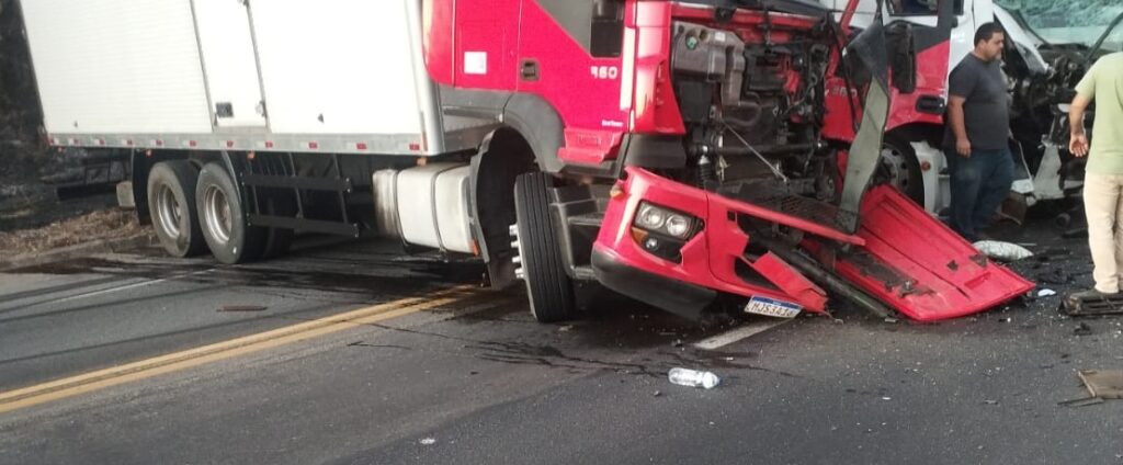 Uma colisão frontal envolvendo dois caminhões na noite dessa terça-feira (26), deixou duas pessoas feridas no km 370 da BR 381, em São Gonçalo do Rio Abaixo.