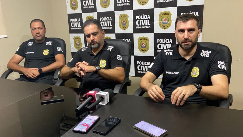 O delegado da 4ª Delegacia Regional de João Monlevade, Bernardo de Barros Machado, e o titular da Delegacia de São Domingos do Prata, Raphael Machado, concederam na tarde desta sexta-feira uma coletiva de imprensa para apresentar detalhes da Operação Guardiões do Prata, deflagrada na manhã de hoje na cidade vizinha.