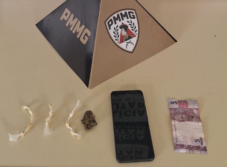 Na revista, os militares localizaram com o maior de idade 12 pedras de substância semelhante ao crack, sendo quatro no bolso da roupa e oito dentro do maço de cigarros. Com o menor, foi encontrado um invólucro de substância semelhante à maconha, além de R$ 5 em dinheiro e um aparelho celular.