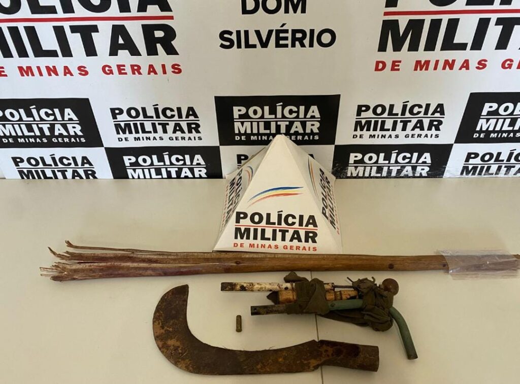 Durante as diligências, os policiais localizaram a foice utilizada no ataque, além de uma arma de fogo calibre .38 de fabricação artesanal e um cartucho deflagrado do mesmo calibre. Todo o material apreendido pertence ao autor, que permanece foragido.