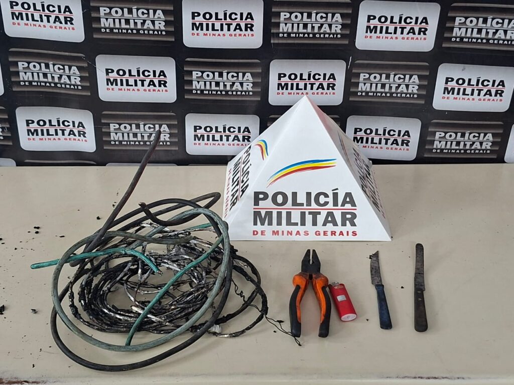 De acordo com a PM, a equipe recebeu informações sobre o crime e, ao chegar ao local, encontrou o suspeito nas proximidades, carregando os materiais furtados. Com ele foram recuperados diversos pedaços de fio de cobre e um cabo de internet (RJ45).