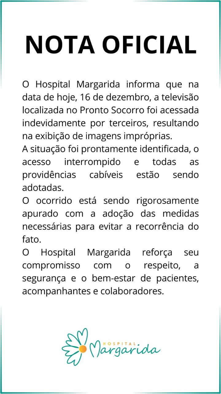 O Hospital Margarida, em João Monlevade, informou na tarde desta terça-feira (16) que a televisão do Pronto-Socorro foi acessada de forma indevida por uma pessoa que estava no local.