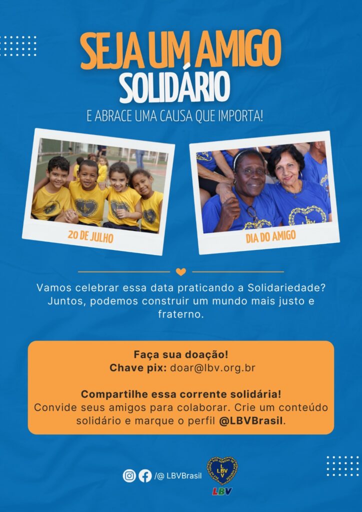 Com o lema “Seja um amigo solidário e abrace uma causa que importa”, a campanha ressalta o valor da amizade como ponte para a construção de um mundo mais justo, fraterno e solidário.