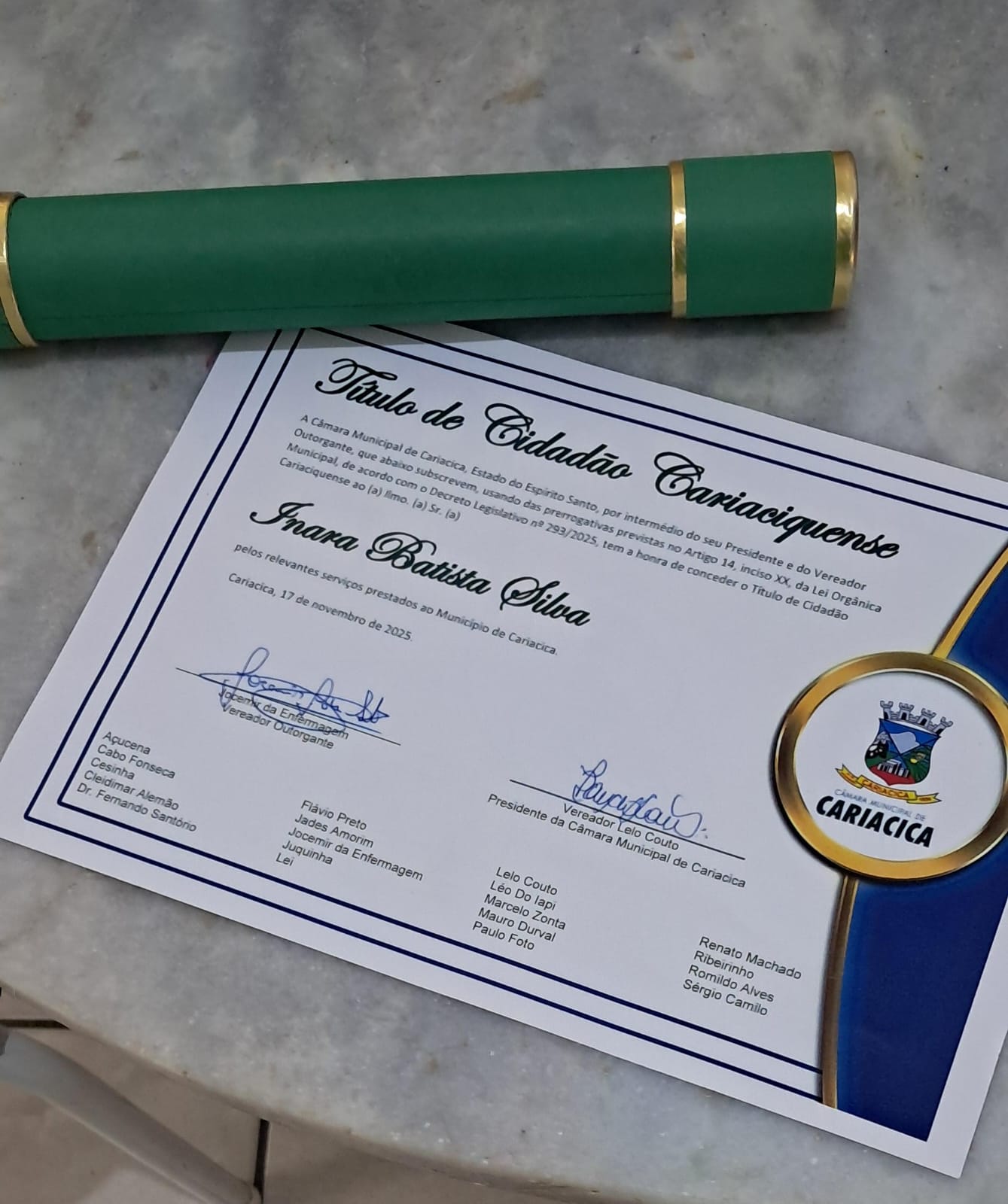 A ativista Inara Silva, conhecida nacionalmente pelo trabalho em defesa das pessoas com obesidade, recebeu o título de Cidadã Cariaciquense em solenidade realizada na Câmara Municipal de Cariacica. A homenagem reconhece sua atuação como coordenadora do Departamento de Voz da Abeso e seu papel na mobilização por políticas públicas voltadas para acessibilidade, inclusão e tratamento adequado da obesidade.