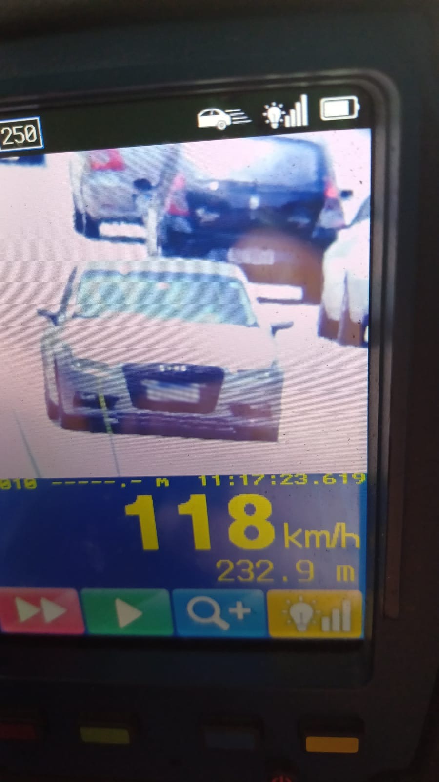 O condutor foi captado pelo primeiro radar a 175 km/h, em um trecho onde o limite é de 110 km/h. Poucos minutos depois, outro equipamento registrou o veículo a 181 km/h na mesma rodovia. Mais adiante, o carro foi flagrado novamente, desta vez a 118 km/h em um trecho com limite de 80 km/h.