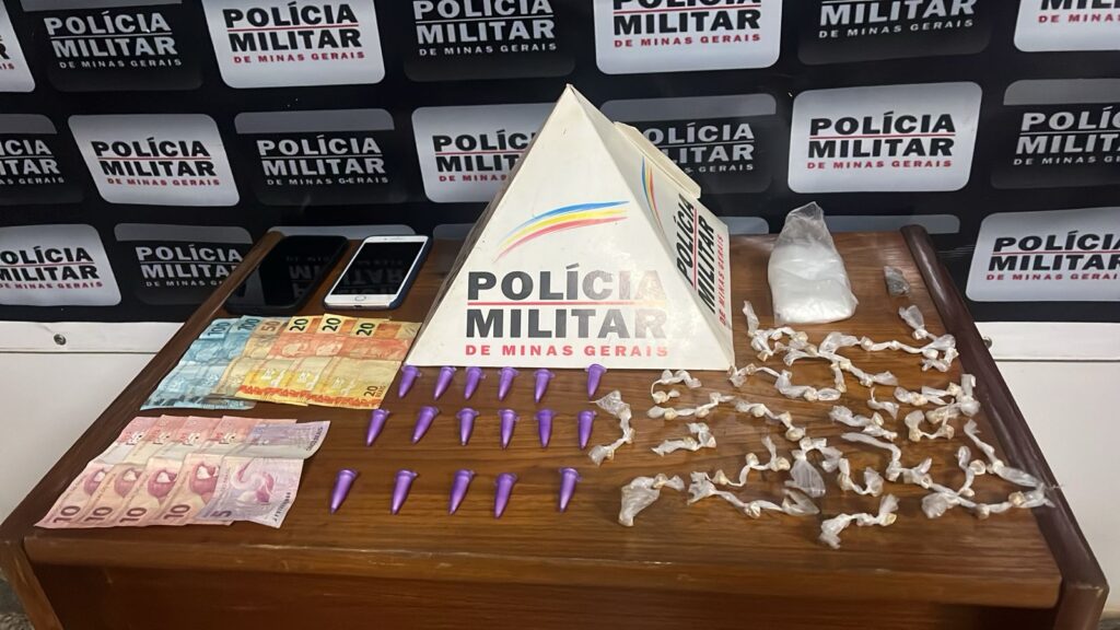 Após denúncia anônima e monitoramento, os militares flagraram a movimentação suspeita e abordaram os envolvidos, de 18 e 21 anos, que tinham dinheiro e celulares. No imóvel, foram apreendidas 75 pedras de crack, 17 pinos de cocaína, uma porção de maconha e materiais para embalo.