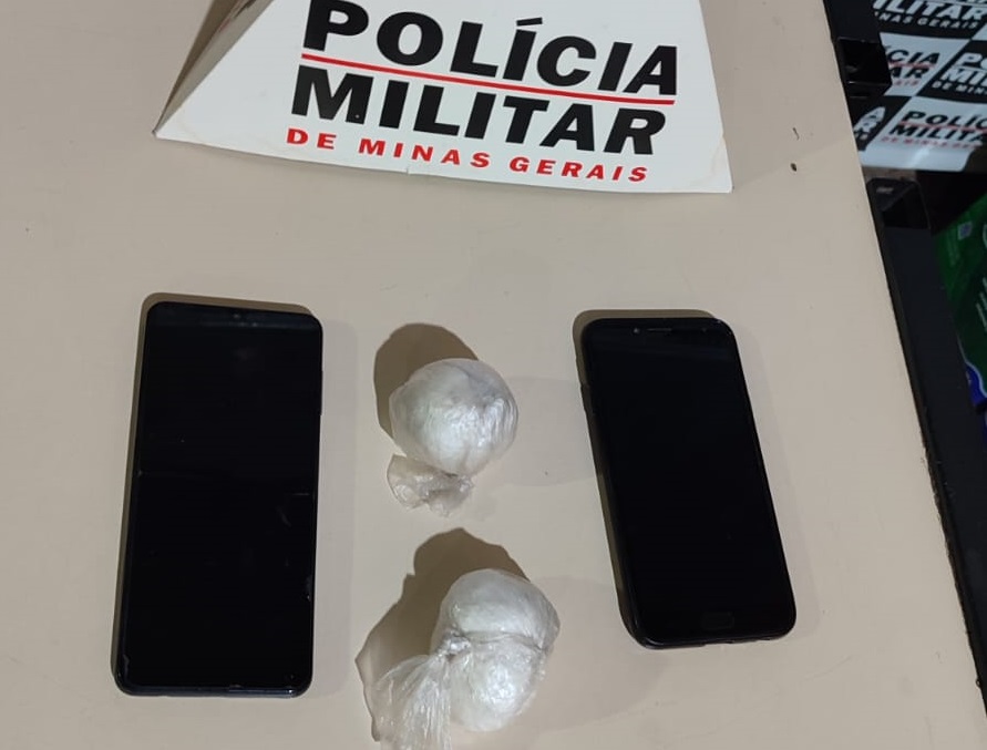 Durante a busca pessoal, os policiais encontraram duas porções de cocaína em uma bolsa que estava com o abordado. Também foram apreendidos dois telefones celulares e a motocicleta utilizada na tentativa de fuga.