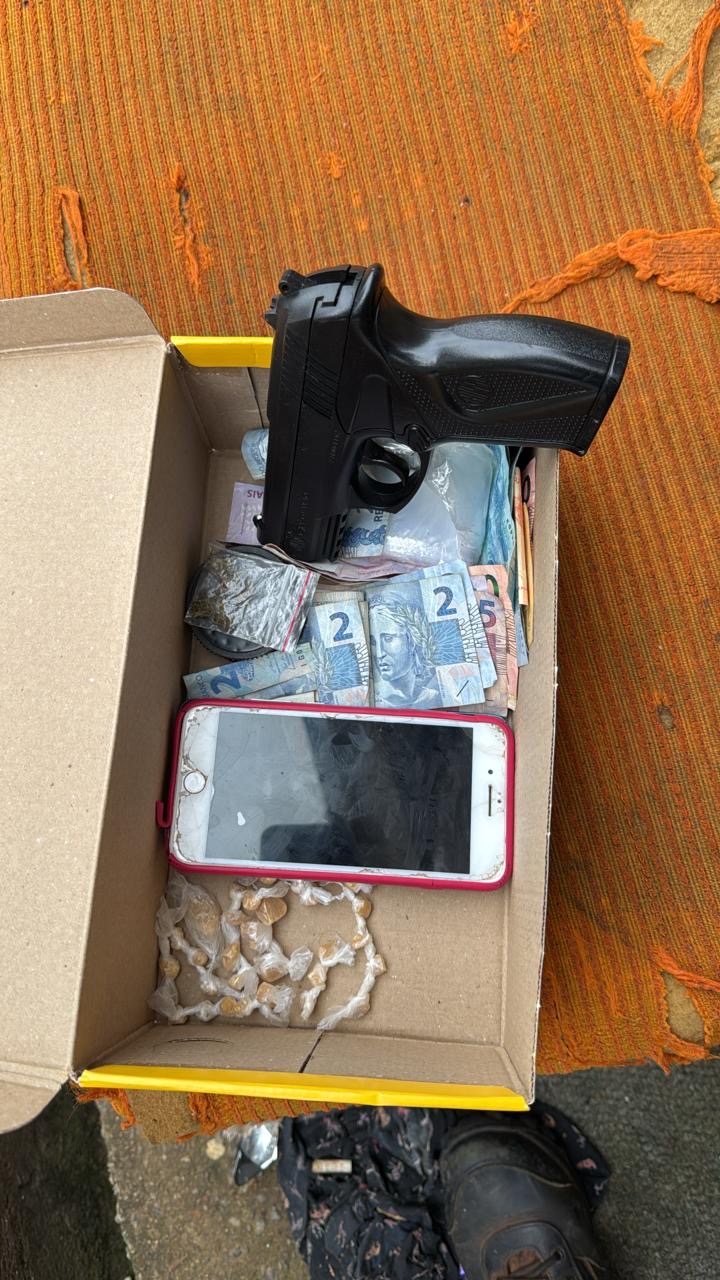 Durante a operação, foram apreendidos 40 papelotes de cocaína, 60 pedras de crack, cinco buchas de maconha, R$ 2,5 mil em dinheiro, munição e dois simulacros de arma de fogo.