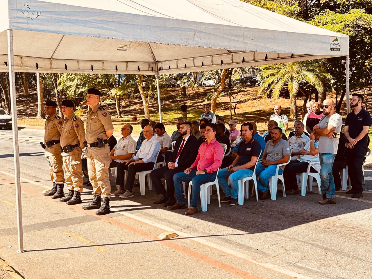 O descerramento da placa de inauguração foi executado pelo coronel Juliano Fábio Lemos Dias, comandante da 12 RPM; acompanhado do  tenente coronel, comandante da 17 Cia PM ind; do prefeito Laércio José Ribeiro e vereador Fernando Linhares, presidente da Câmara Municipal.