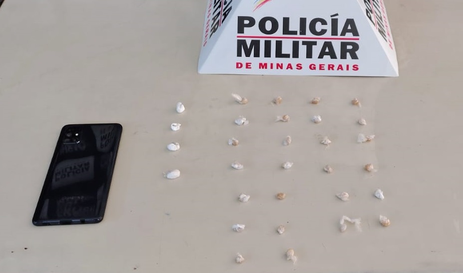 Foram apreendidas 26 porções de crack, 4 porções de cocaína e um aparelho celular.
