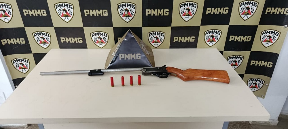 Durante a fuga, o indivíduo arremessou uma mochila e, em seguida, caiu. Ao realizarem buscas no local, os policiais localizaram uma espingarda calibre .32 e quatro munições do mesmo calibre.