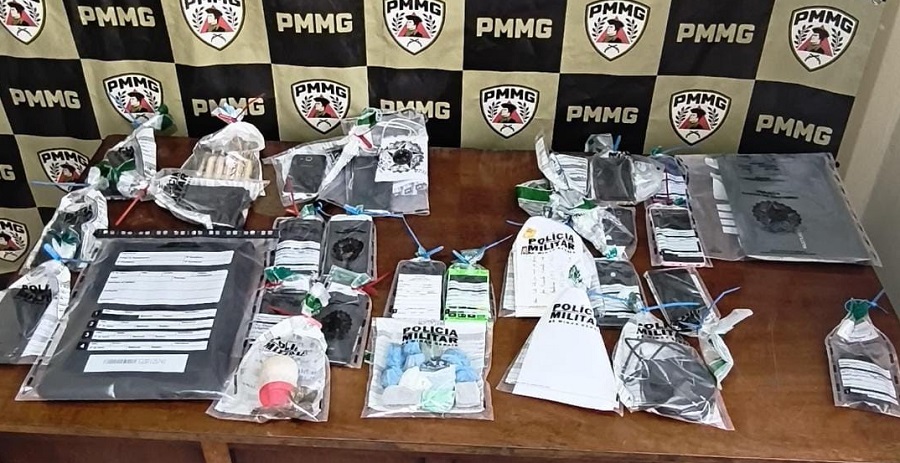 Durante a operação, as equipes policiais realizaram diligências em diversos endereços e apreenderam 18 celulares, dois notebooks, uma pistola de pressão, 17 cilindros com chumbos, 12 porções de maconha, uma máquina de cartão de crédito e um aparelho eletrônico de IPTV.