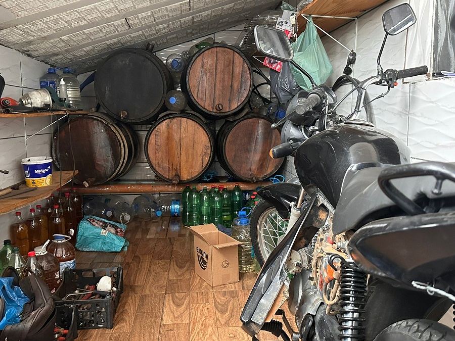 Durante a fiscalização, foram encontrados diversos recipientes inadequados para o armazenamento da bebida, como contêineres IBC, bombonas e garrafas PET, além de tonéis de madeira utilizados para envelhecimento. Segundo o proprietário, a bebida era produzida em um imóvel rural no município de Ferros e transportada para comercialização em Itabira.